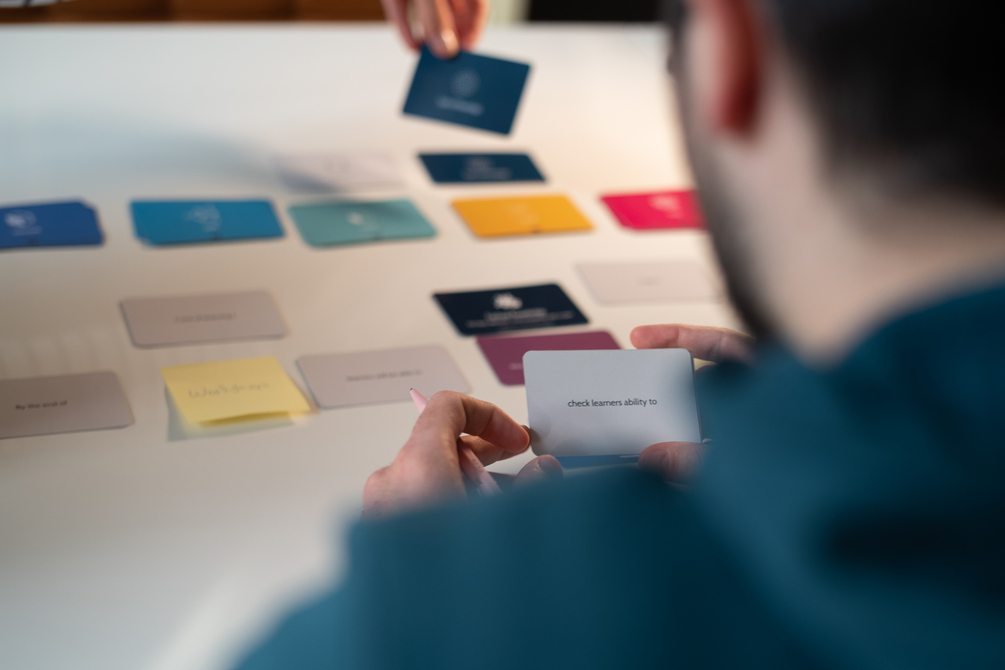 A design cycle with the Learning Assessment Design Deck deck can be run individually or in teams as a design studio-like session. It makes the process of designing learning objectives and constructively aligned assessment strategies creative, collaborative and even fun.